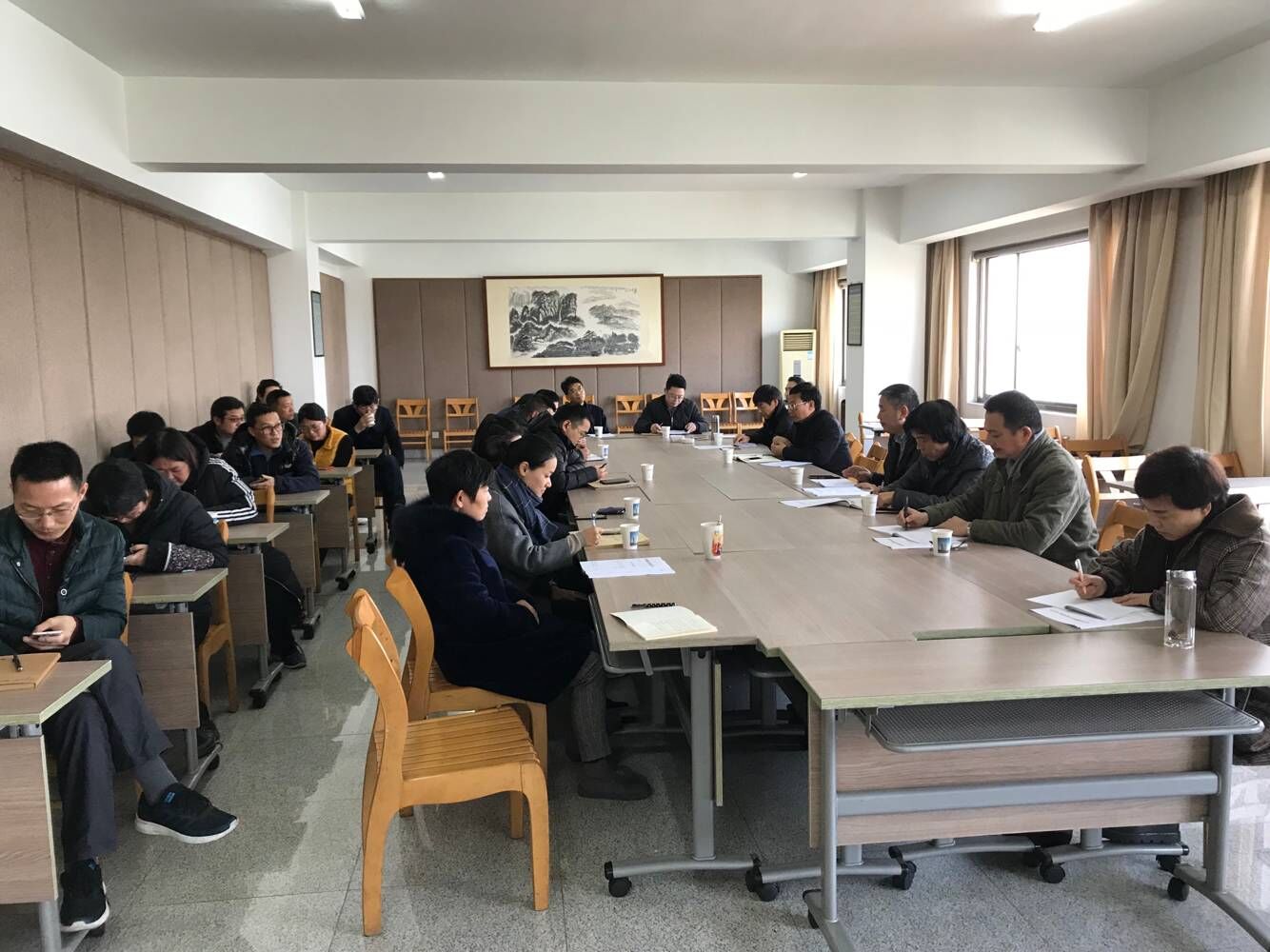 2018年12月24日下午,公司在11樓會議室召開了中層及以上管理人員會議。會議由公司副總經(jīng)理樓希龍主持。公司領(lǐng)導(dǎo)及二十余位中層管理人員參加會議。會議傳達(dá)了關(guān)于聘任王欣為金華市龍?jiān)唇ㄔO(shè)工程施工圖審查中心主任及關(guān)于聘任葉肖為金華市建筑設(shè)計(jì)院有限公司辦公室副主任(主持工作)的決定。吳學(xué)敏總經(jīng)理就為什么調(diào)整龍?jiān)粗行陌嘧蛹霸O(shè)計(jì)公司辦公室班子、班子調(diào)整怎樣產(chǎn)生的等事項(xiàng)作了說明;并對兩位新調(diào)整人員提了要求;二位新提拔同志作了表態(tài)發(fā)言。會議還通報(bào)了近期重要工作。.jpg)