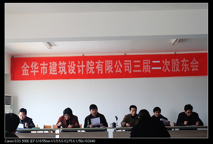 2011年3月26日,金華市建筑設(shè)計(jì)院有限公司第三屆二次股東會(huì)在公司十一樓會(huì)議室召開,會(huì)議對2010年度公司董事會(huì)報(bào)告、監(jiān)事報(bào)告、財(cái)務(wù)報(bào)告等進(jìn)行了審議和表決。